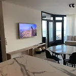 Con un balcón y una zona de estar, este alojamiento frente a la playa está amueblado con un sofá y comodidades como TV y TV de pantalla plana con canales vía satélite para su disfrute. Las habitaciones cuentan con detectores de humo para seguridad. El apartamento acoge a los huéspedes en 1 dormitorio. El establecimiento dispone de 1 baño con un inodoro separado de la ducha y una ducha. También ofrece secadores de pelo.
